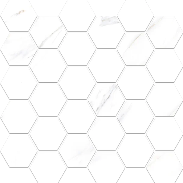 33X33 CALACATTA BEYAZ TAM PARLAK MINI HEXAGON MOZAIK